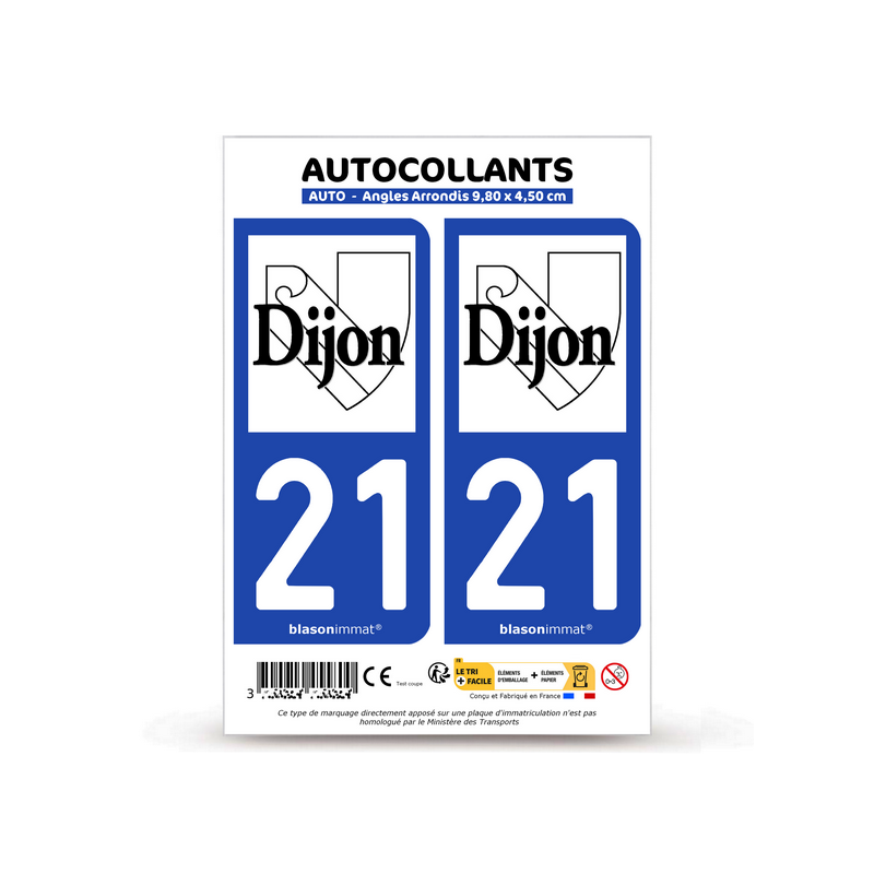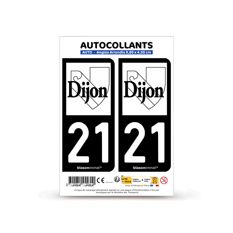 2 Autocollants plaque immatriculation Auto 21 Dijon - Ville