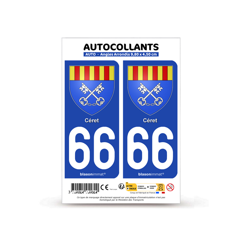 Autocollant plaque immatriculation 66 Céret - Armoiries