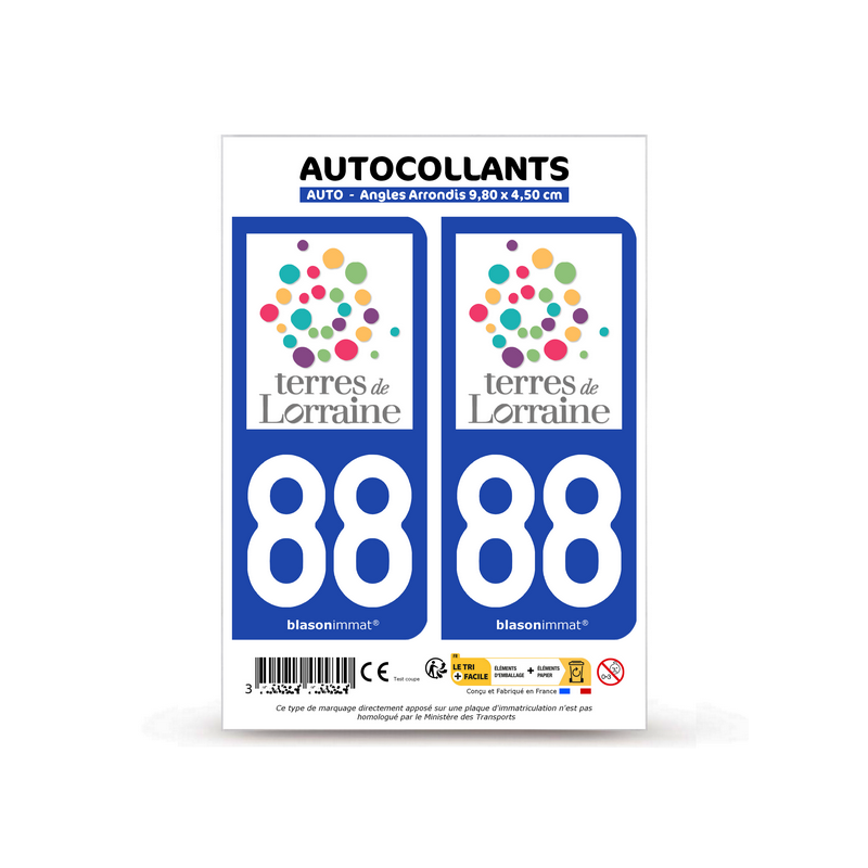 Autocollant plaque immatriculation 88 Lorraine - Terres