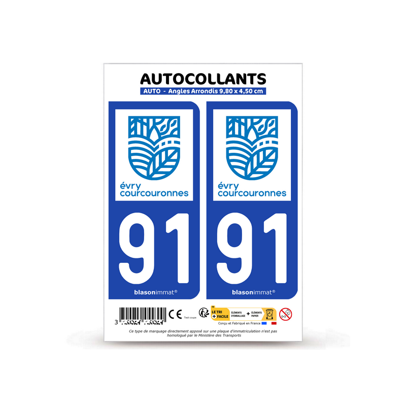 Autocollant plaque d'immatriculation 91 Évry-Courcouronnes - Ville